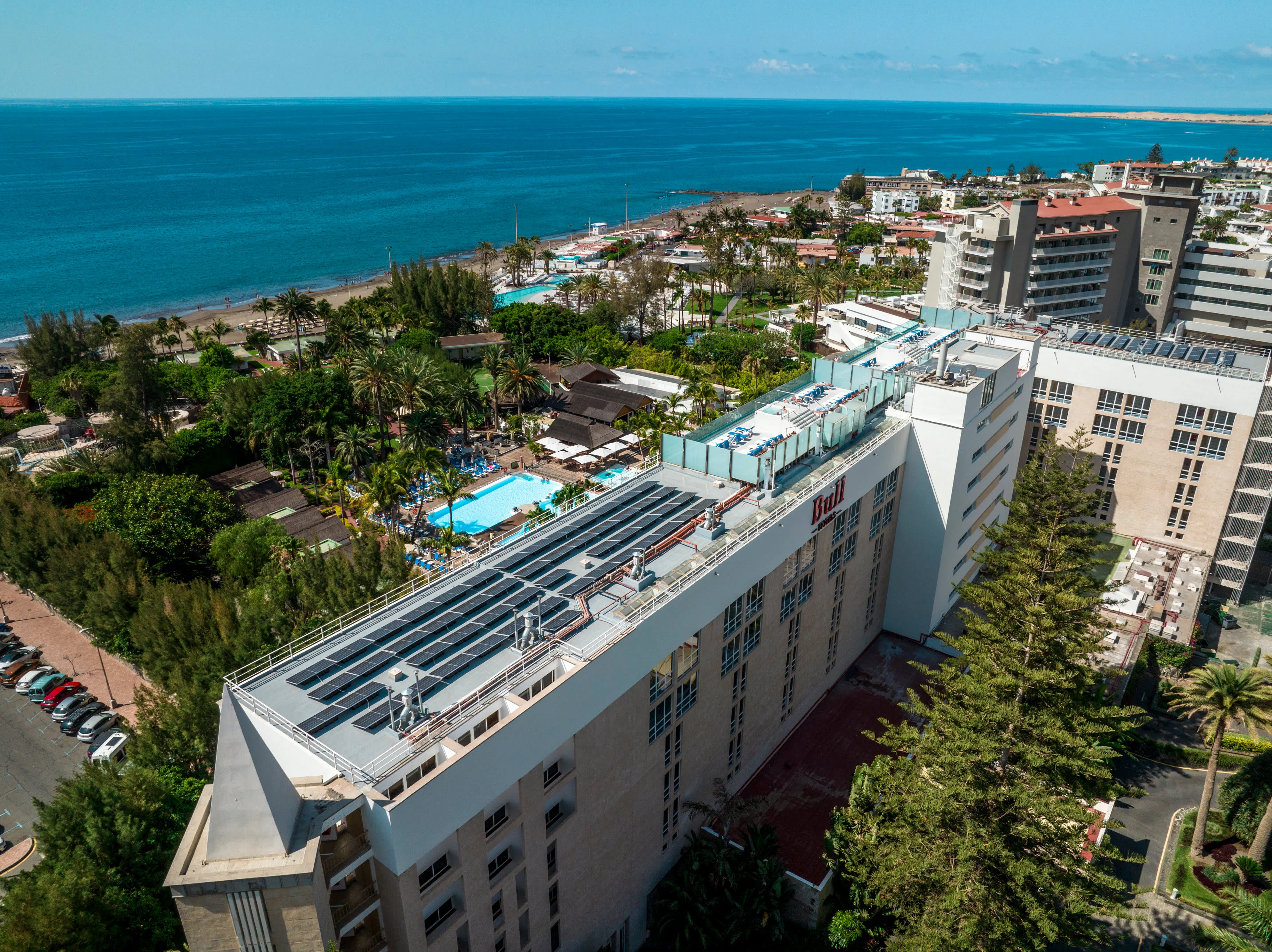 Desde SM Advance Energy hemos puesto a disposición de Bull Hotels nuestros servicios de desarrollo y mantenimiento, para que su instalación esté siempre a punto. Bull Costa Canaria & Spa es el único hotel en San Agustín con spa incluido en el precio de cualquier régimen que elijas además de ser el hotel más concurrido de la zona. Un reto que encuentra un importante apoyo en la generación de energía para el autoconsumo.